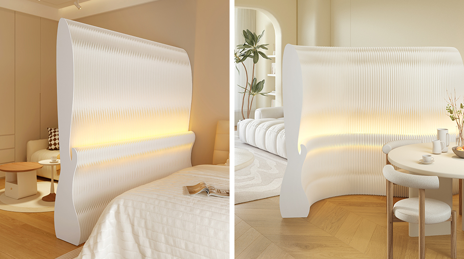 把含苞待放的百合花融于屏风设计,自然生长姿态,为空间增添自然生命力。伸缩自如,变化随心,隔断装饰皆宜。柔美暖光溢出,温馨氛围悄然到来