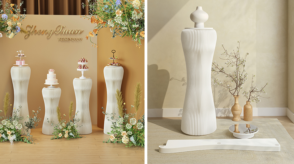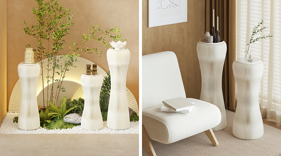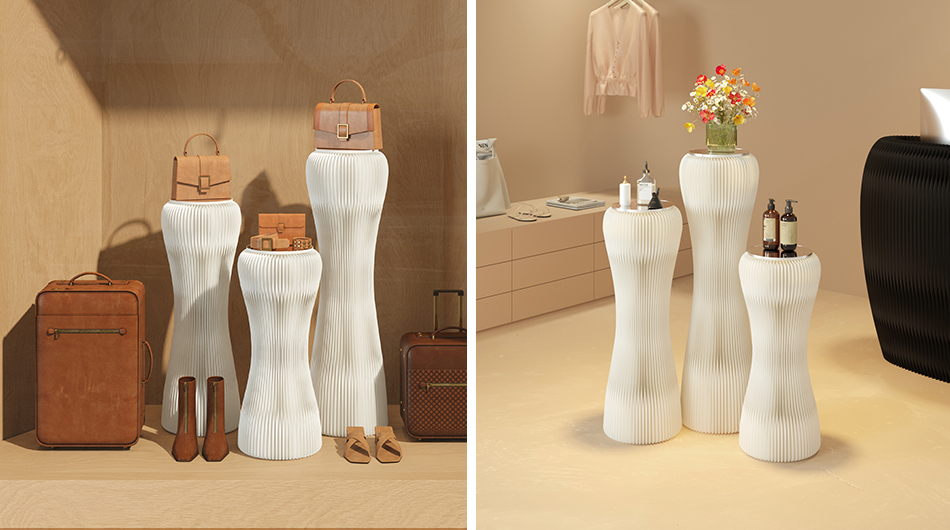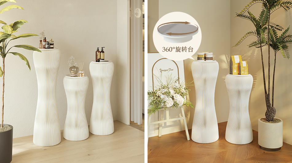 圆中有曲,柔美造型散发优雅气质,中部镜面旋转置物台,360°皆可展示。让展品拥有中心聚焦的视觉效果,陈列亦是装饰,组合搭配更显层次