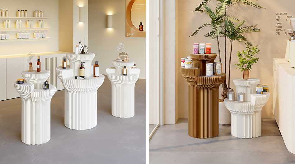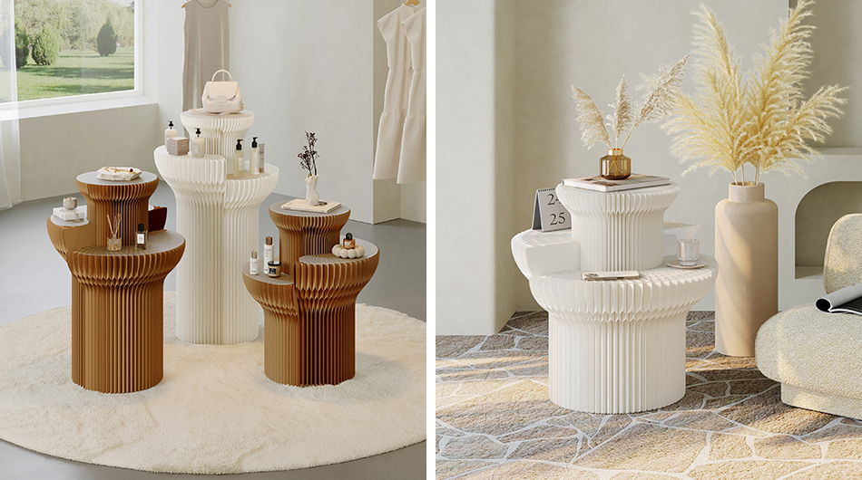 一个展架,富有高低层次的视觉效果,优雅的艺术风格,可装点空间氛围感。中心置物台,搭配左右环绕式侧边台面,满足不同情境陈列,丰富视觉效果