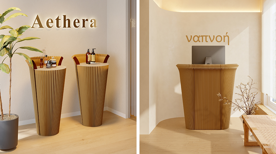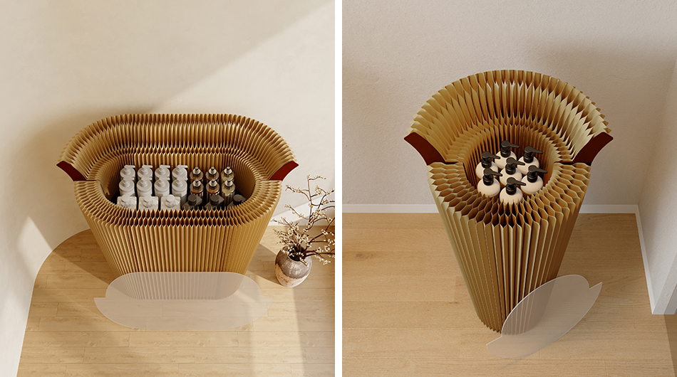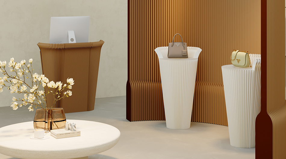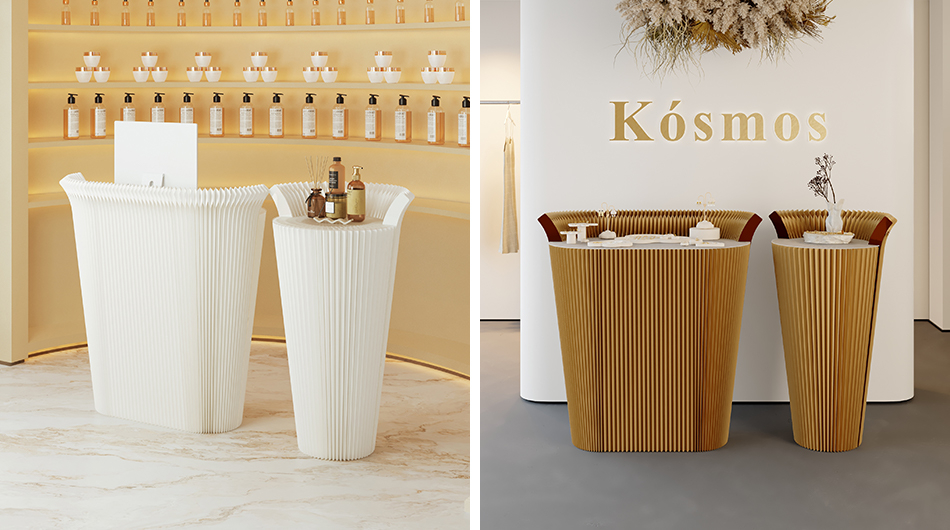 优雅曲线与灵动弧度勾勒空间气质,让展品陈列与视觉引导达到平衡。中部储物设计,上方美感置物,前台展桌皆宜,多用的空间艺术品